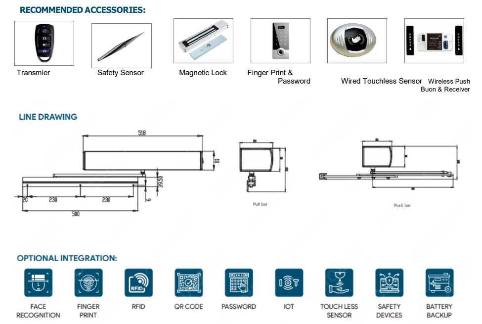 - TheSwing Door Operator drive unit operates with less noise, with reliable peormance and safety, providing more convenience