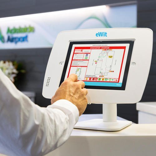 - Evisitex displays visitor information and images at check-in.